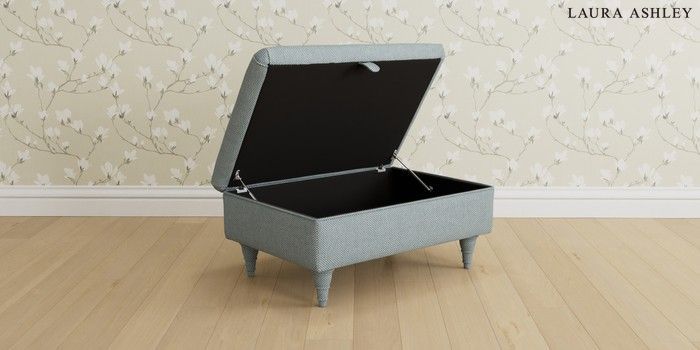 6.12.1 Buy Beaumaris by Laura Ashley Storage Footstool Anneliese Seaspray Blue Low Turned - Light Oak from the Next UK online shop Click here to use our accessible website