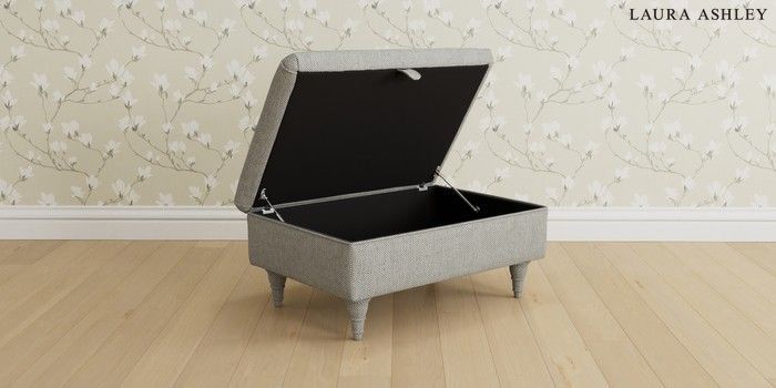 6.12.1 Buy Beaumaris by Laura Ashley Storage Footstool Anneliese Steel Grey Low Turned - Black from the Next UK online shop Click here to use our accessible website