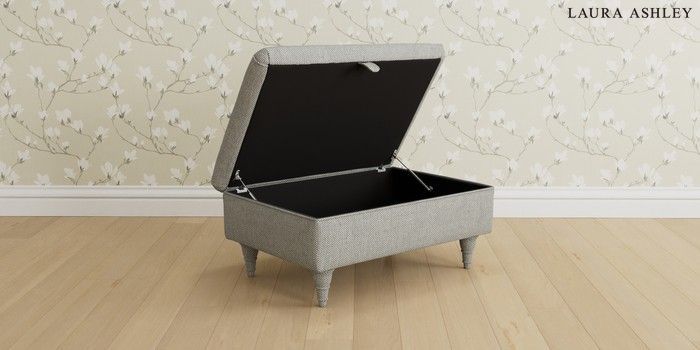 6.12.1 Buy Beaumaris by Laura Ashley Storage Footstool Anneliese Steel Grey Low Turned - Teak from the Next UK online shop Click here to use our accessible website