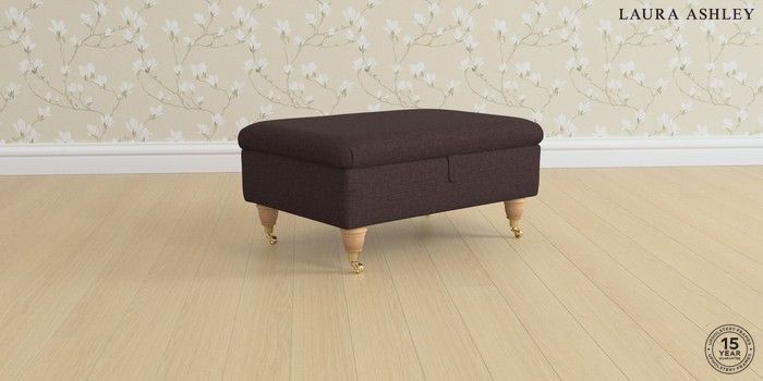 7.0.3 Buy Beaumaris by Laura Ashley Storage Footstool Bainton Chocolate Brown Low Brass Castor - Light Oak from the Next UK online shop Click here to use our accessible website