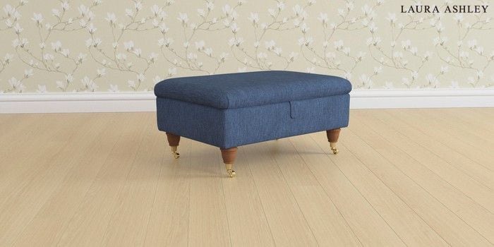 6.12.13 Buy Beaumaris by Laura Ashley Storage Footstool Bainton Midnight Navy Low Brass Castor - Teak from the Next UK online shop Click here to use our accessible website