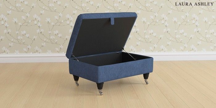 6.12.1 Buy Beaumaris by Laura Ashley Storage Footstool Bainton Midnight Navy Low Chrome Castor - Black from the Next UK online shop Click here to use our accessible website