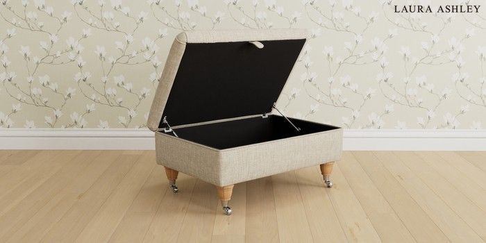 6.12.1 Buy Beaumaris by Laura Ashley Storage Footstool Bainton Natural Low Chrome Castor - Light Oak from the Next UK online shop Click here to use our accessible website