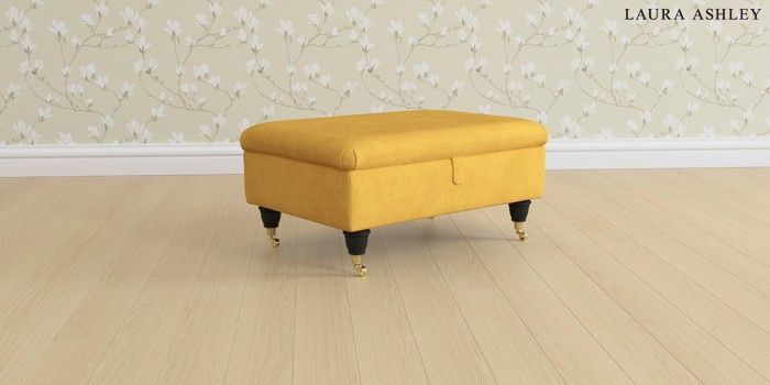 6.12.1 Buy Beaumaris by Laura Ashley Storage Footstool Bainton Ochre Yellow Low Brass Castor - Black from the Next UK online shop Click here to use our accessible website