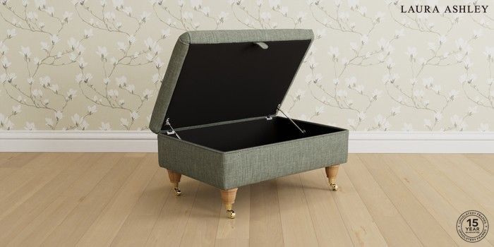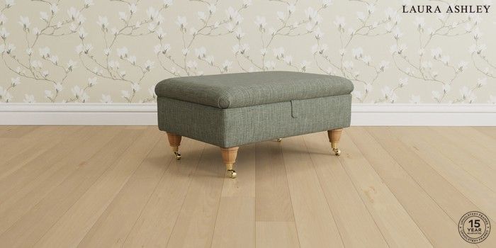 6.12.1 Buy Beaumaris by Laura Ashley Storage Footstool Bainton Sage Green Low Brass Castor - Light Oak from the Next UK online shop Click here to use our accessible website