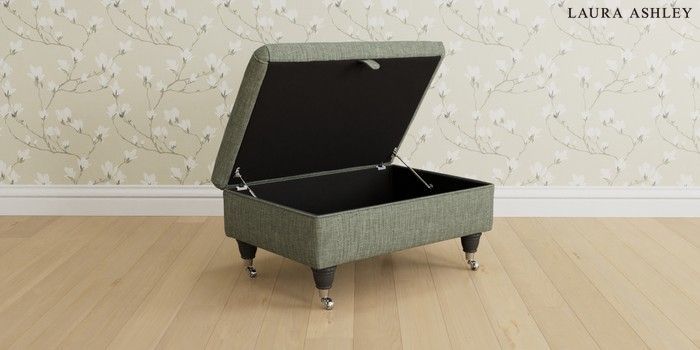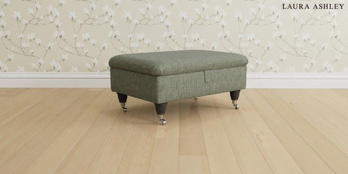 6.12.1 Buy Beaumaris by Laura Ashley Storage Footstool Bainton Sage Green Low Chrome Castor - Black from the Next UK online shop Click here to use our accessible website