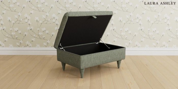 6.12.1 Buy Beaumaris by Laura Ashley Storage Footstool Bainton Sage Green Low Turned - Chestnut from the Next UK online shop Click here to use our accessible website