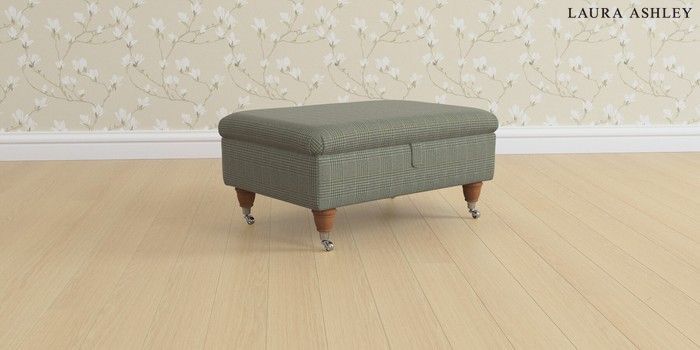 6.12.13 Buy Beaumaris by Laura Ashley Storage Footstool Birchgrove Check Olive Green Low Chrome Castor - Teak from the Next UK online shop Click here to use our accessible website