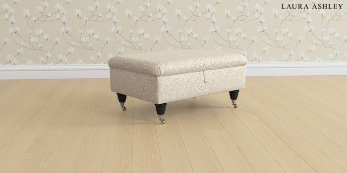 6.12.1 Buy Beaumaris by Laura Ashley Storage Footstool Borwick Natural Low Chrome Castor - Black from the Next UK online shop Click here to use our accessible website