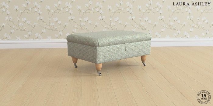 6.12.1 Buy Beaumaris by Laura Ashley Storage Footstool Borwick Newport Blue Low Chrome Castor - Light Oak from the Next UK online shop Click here to use our accessible website