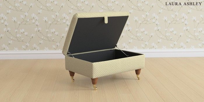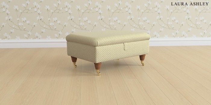 6.12.13 Buy Beaumaris by Laura Ashley Storage Footstool Chequers Hedgerow Green Low Brass Castor - Teak from the Next UK online shop Click here to use our accessible website