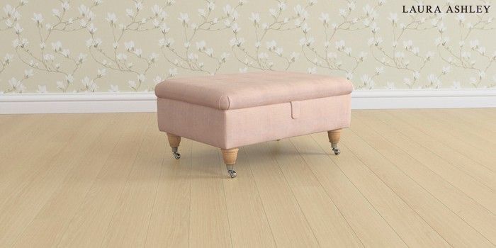 6.12.1 Buy Beaumaris by Laura Ashley Storage Footstool Edwin Chenille Blush Pink Low Chrome Castor - Light Oak from the Next UK online shop Click here to use our accessible website