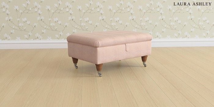 6.12.1 Buy Beaumaris by Laura Ashley Storage Footstool Edwin Chenille Blush Pink Low Chrome Castor - Teak from the Next UK online shop Click here to use our accessible website