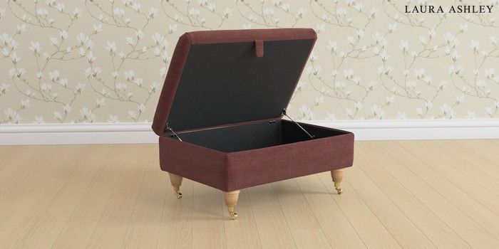 6.12.1 Buy Beaumaris by Laura Ashley Storage Footstool Edwin Chenille Burgundy Red Low Brass Castor - Light Oak from the Next UK online shop Click here to use our accessible website