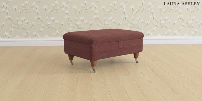6.12.1 Buy Beaumaris by Laura Ashley Storage Footstool Edwin Chenille Burgundy Red Low Chrome Castor - Teak from the Next UK online shop Click here to use our accessible website