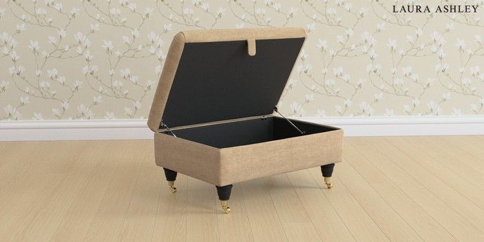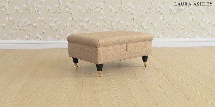 6.12.1 Buy Beaumaris by Laura Ashley Storage Footstool Edwin Chenille Gold Natural Low Brass Castor - Black from the Next UK online shop Click here to use our accessible website