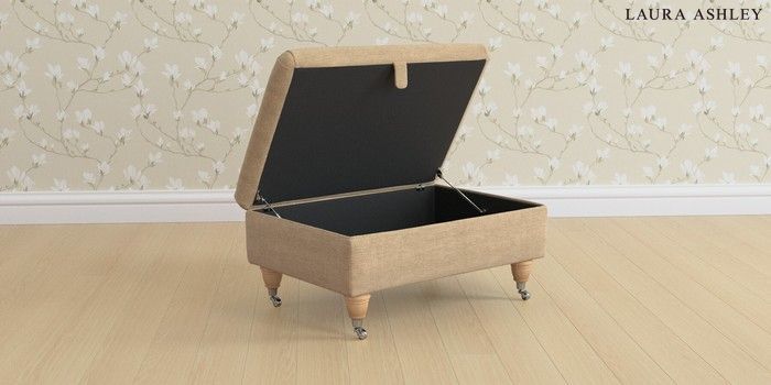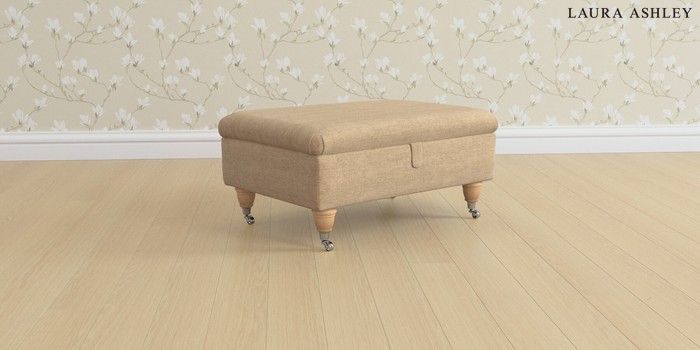 6.12.1 Buy Beaumaris by Laura Ashley Storage Footstool Edwin Chenille Gold Natural Low Chrome Castor - Light Oak from the Next UK online shop Click here to use our accessible website