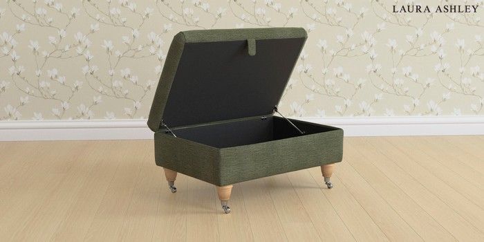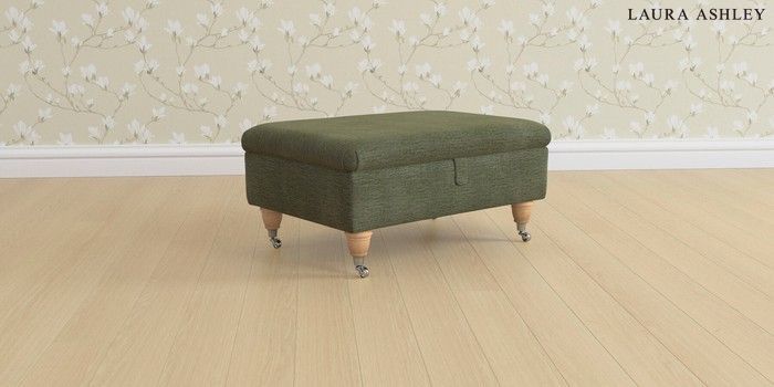 6.12.1 Buy Beaumaris by Laura Ashley Storage Footstool Edwin Chenille Hedgerow Green Low Chrome Castor - Light Oak from the Next UK online shop Click here to use our accessible website