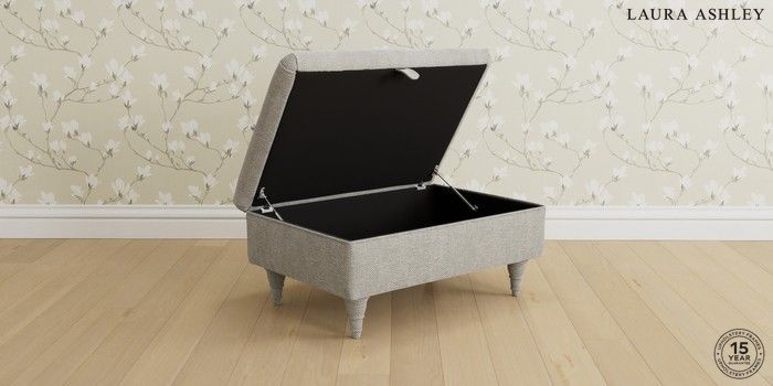 6.12.1 Buy Beaumaris by Laura Ashley Storage Footstool Edwin Chenille Silver Grey Low Turned - Light Oak from the Next UK online shop Click here to use our accessible website