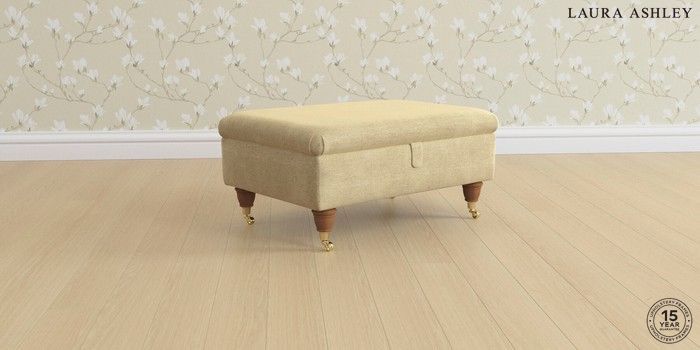 6.12.1 Buy Beaumaris by Laura Ashley Storage Footstool Edwin Chenille Truffle Natural Low Brass Castor - Teak from the Next UK online shop Click here to use our accessible website