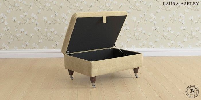 6.12.1 Buy Beaumaris by Laura Ashley Storage Footstool Edwin Chenille Truffle Natural Low Chrome Castor - Chestnut from the Next UK online shop Click here to use our accessible website