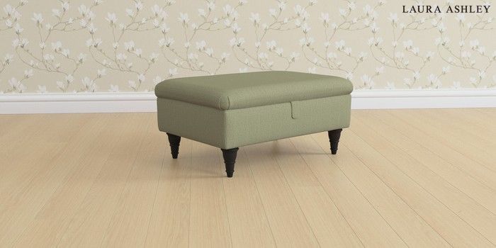 6.12.1 Buy Beaumaris by Laura Ashley Storage Footstool Edwin Herringbone Hedgerow Green Low Turned - Black from the Next UK online shop Click here to use our accessible website
