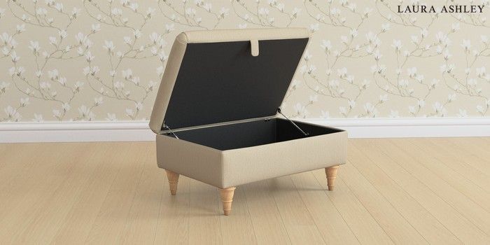 6.12.1 Buy Beaumaris by Laura Ashley Storage Footstool Edwin Herringbone Natural Low Turned - Light Oak from the Next UK online shop Click here to use our accessible website