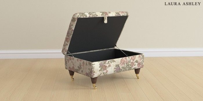 6.12.1 Buy Beaumaris by Laura Ashley Storage Footstool Ellerby Grape Purple Low Brass Castor - Chestnut from the Next UK online shop Click here to use our accessible website