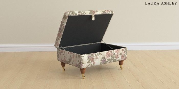 6.12.1 Buy Beaumaris by Laura Ashley Storage Footstool Ellerby Grape Purple Low Brass Castor - Teak from the Next UK online shop Click here to use our accessible website