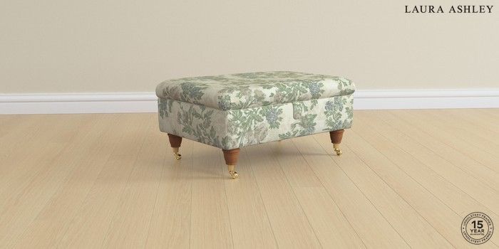 6.12.1 Buy Beaumaris by Laura Ashley Storage Footstool Ellerby Seaspray Blue Low Brass Castor - Teak from the Next UK online shop Click here to use our accessible website