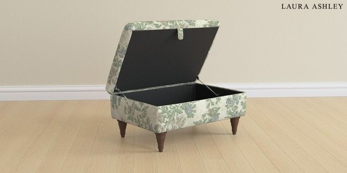6.12.13 Buy Beaumaris by Laura Ashley Storage Footstool Ellerby Seaspray Blue Low Turned - Chestnut from the Next UK online shop Click here to use our accessible website