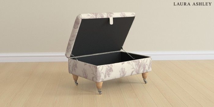 6.12.1 Buy Beaumaris by Laura Ashley Storage Footstool Gosford Weave Dusky Plum Purple Low Chrome Castor - Light Oak from the Next UK online shop Click here to use our accessible website