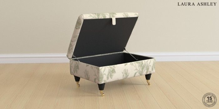 6.12.1 Buy Beaumaris by Laura Ashley Storage Footstool Gosford Weave Sage Green Low Brass Castor - Black from the Next UK online shop Click here to use our accessible website