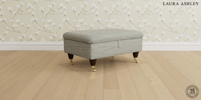 6.12.1 Buy Beaumaris by Laura Ashley Storage Footstool Harley Dove Grey Low Brass Castor - Chestnut from the Next UK online shop Click here to use our accessible website