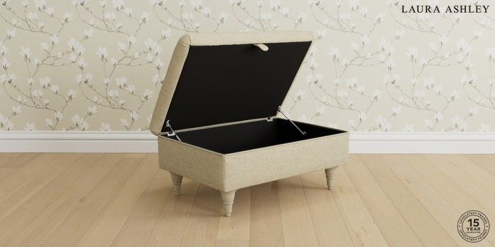 6.12.1 Buy Beaumaris by Laura Ashley Storage Footstool Harley Natural Low Turned - Chestnut from the Next UK online shop Click here to use our accessible website