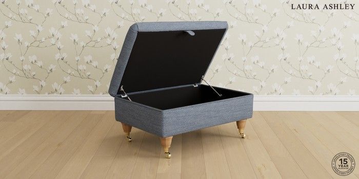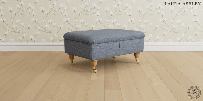 6.12.1 Buy Beaumaris by Laura Ashley Storage Footstool Harley Seaspray Blue Low Brass Castor - Light Oak from the Next UK online shop Click here to use our accessible website