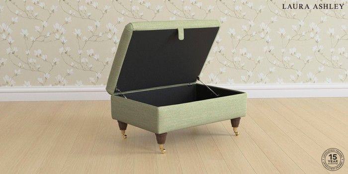 6.12.1 Buy Beaumaris by Laura Ashley Storage Footstool Kinsham Hedgerow Green Low Brass Castor - Chestnut from the Next UK online shop Click here to use our accessible website