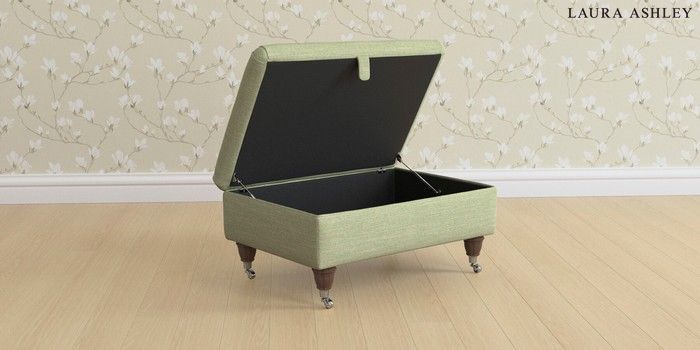 6.12.1 Buy Beaumaris by Laura Ashley Storage Footstool Kinsham Hedgerow Green Low Chrome Castor - Chestnut from the Next UK online shop Click here to use our accessible website