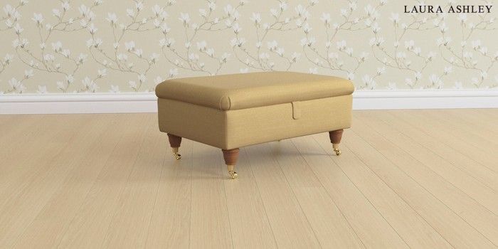 6.12.13 Buy Beaumaris by Laura Ashley Storage Footstool Kinsham Ochre Yellow Low Brass Castor - Teak from the Next UK online shop Click here to use our accessible website