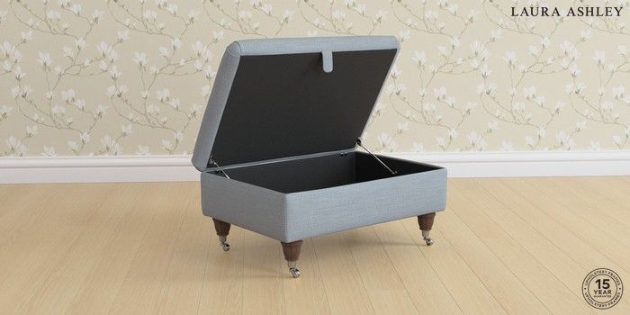 6.12.1 Buy Beaumaris by Laura Ashley Storage Footstool Kinsham Seaspray Blue Low Chrome Castor - Chestnut from the Next UK online shop Click here to use our accessible website