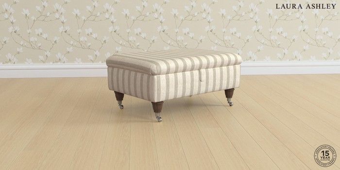 6.12.1 Buy Beaumaris by Laura Ashley Storage Footstool Kinsham Stripe Natural Low Chrome Castor - Chestnut from the Next UK online shop Click here to use our accessible website