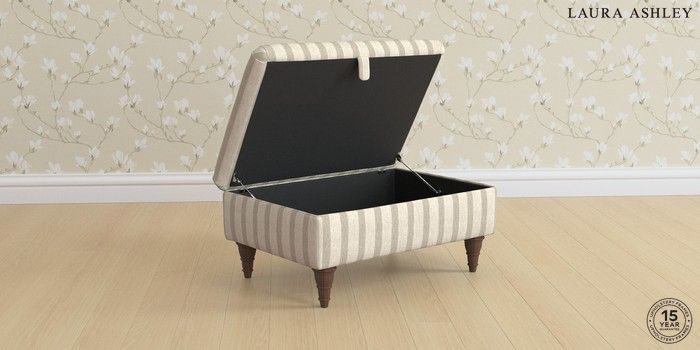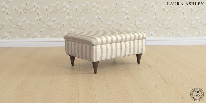 6.12.1 Buy Beaumaris by Laura Ashley Storage Footstool Kinsham Stripe Natural Low Turned - Chestnut from the Next UK online shop Click here to use our accessible website