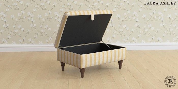 7.3.1 Buy Beaumaris by Laura Ashley Storage Footstool Kinsham Stripe Ochre Yellow Low Turned - Chestnut from the Next UK online shop Click here to use our accessible website