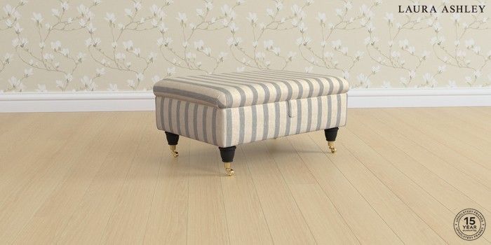 6.12.1 Buy Beaumaris by Laura Ashley Storage Footstool Kinsham Stripe Seaspray Blue Low Brass Castor - Black from the Next UK online shop Click here to use our accessible website