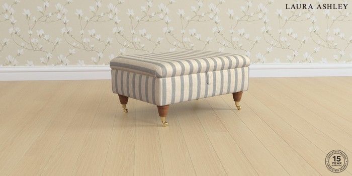 6.12.1 Buy Beaumaris by Laura Ashley Storage Footstool Kinsham Stripe Seaspray Blue Low Brass Castor - Teak from the Next UK online shop Click here to use our accessible website