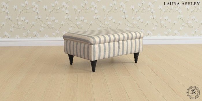 6.12.1 Buy Beaumaris by Laura Ashley Storage Footstool Kinsham Stripe Seaspray Blue Low Turned - Black from the Next UK online shop Click here to use our accessible website