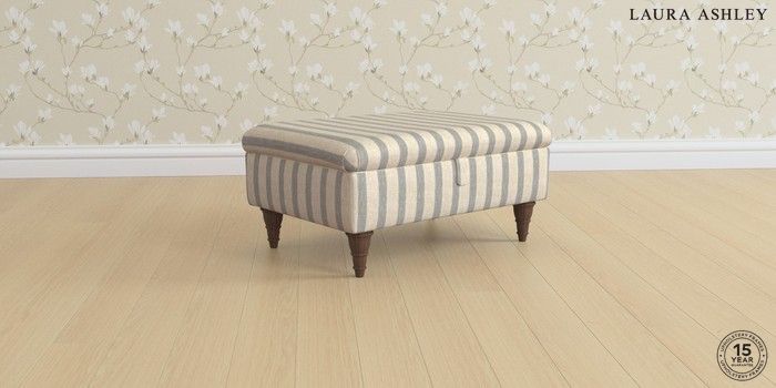 6.12.1 Buy Beaumaris by Laura Ashley Storage Footstool Kinsham Stripe Seaspray Blue Low Turned - Chestnut from the Next UK online shop Click here to use our accessible website