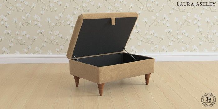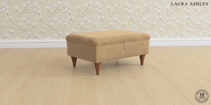 6.12.1 Buy Beaumaris by Laura Ashley Storage Footstool Lundar Chenille Caramel Natural Low Turned - Teak from the Next UK online shop Click here to use our accessible website