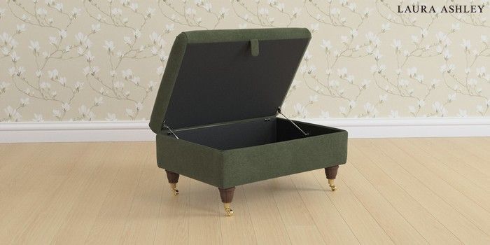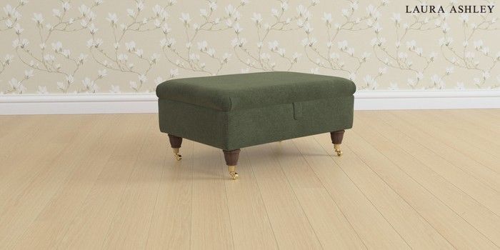 6.12.1 Buy Beaumaris by Laura Ashley Storage Footstool Lundar Chenille Ivy Green Low Brass Castor - Chestnut from the Next UK online shop Click here to use our accessible website
