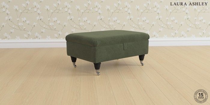 6.12.1 Buy Beaumaris by Laura Ashley Storage Footstool Lundar Chenille Ivy Green Low Chrome Castor - Black from the Next UK online shop Click here to use our accessible website